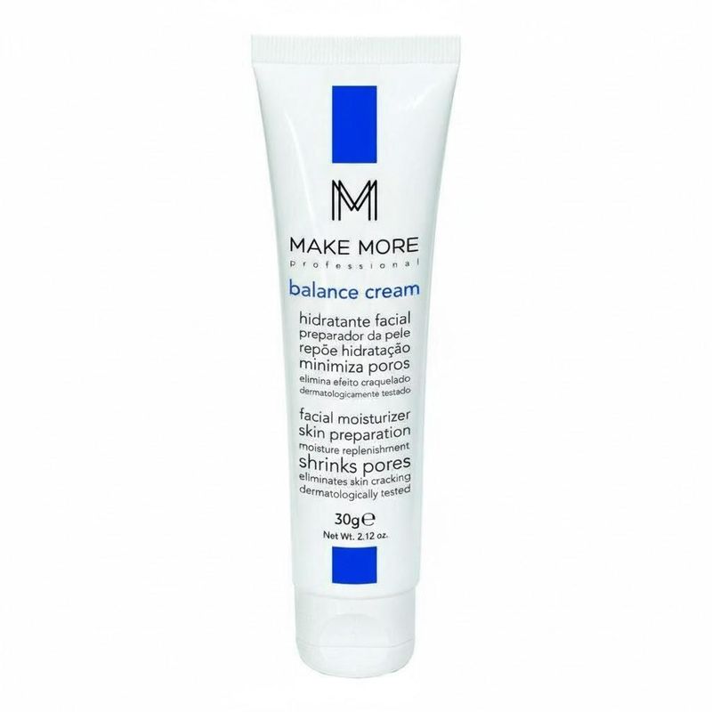 O Balance Cream da Make More é um hidratante facial preparador para pele, ele minimiza os poros, hidrata e mantém o controle hídrico, sendo perfeito para utilizar antes da maquiagem, pois com uma textura melhor, melhor será o seu acabamento. Sua make pode continuar com uma boa cobertura, e ainda assim parecer natural, além disso, o balance cream elimina o efeito craquelado.